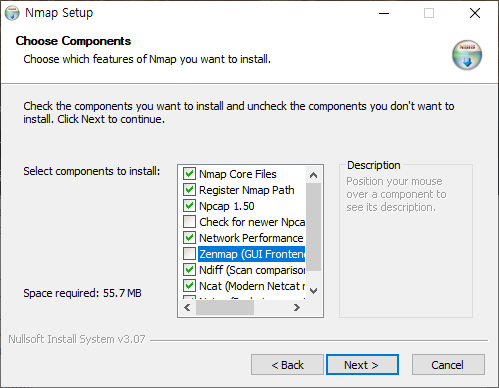 nmap setup4 저는 선택하지 않고 next를 눌렀습니다.