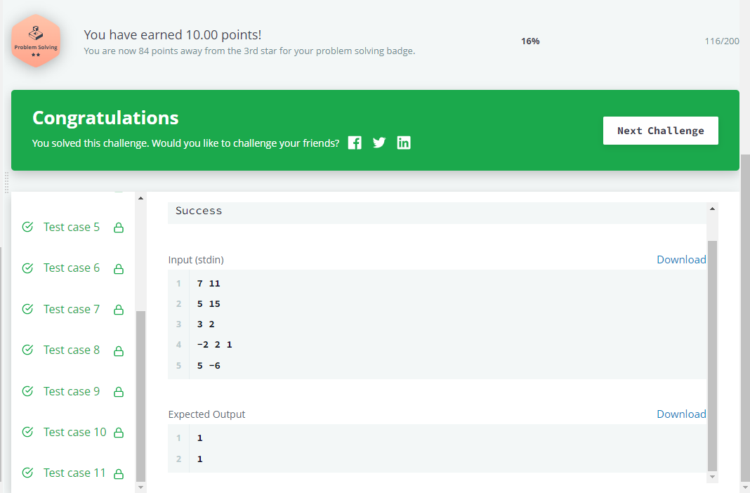 Only the second orange falls within the region between 7 and 11, so we print 1 as our second line of output.- Solutions