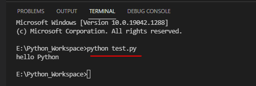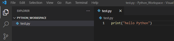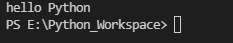 간단한 출력문을 작성하고 "ctrl + F5" 를 누르면 Terminal에 hello Python이 출력되는 것을 확인 할 수 있습니다.