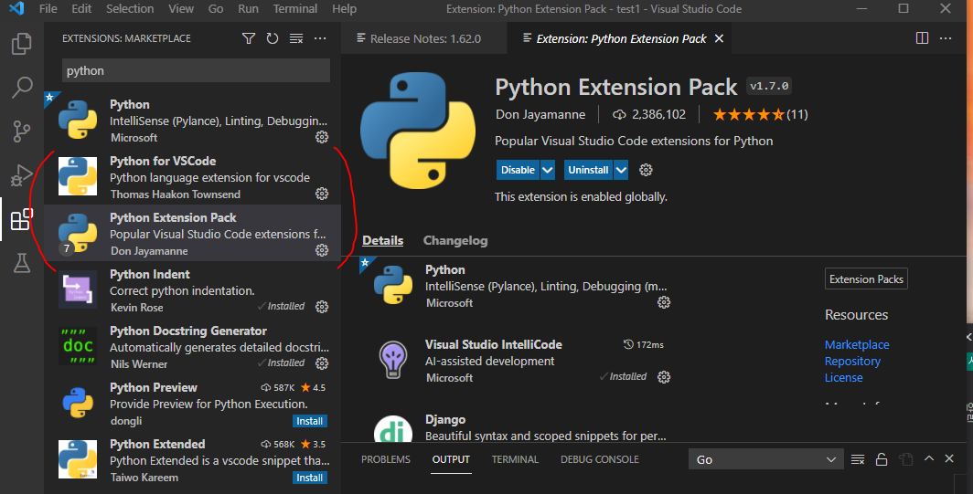 2. Python for VSCode, Python Extension Pack 도 이어서 설치합니다.