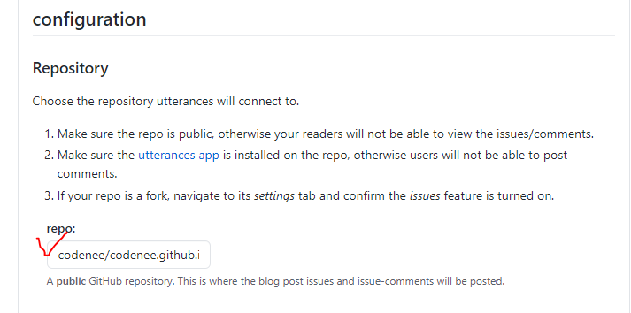 blog rository가 공개이고, 댓글을 추가하고 싶다면 blog repository 이름을 입력합니다.
